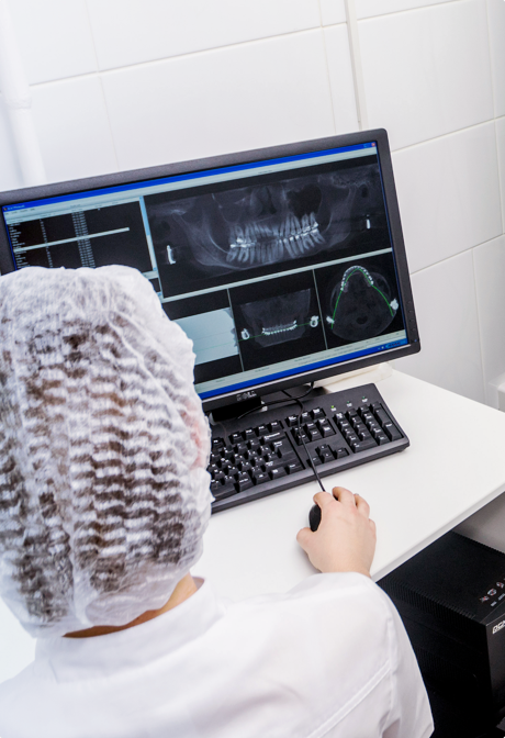 На первом приеме проводится обследование с помощью компьютерного томографа. Он предоставляет доктору полную информацию, что гарантирует точное определение причины заболевания