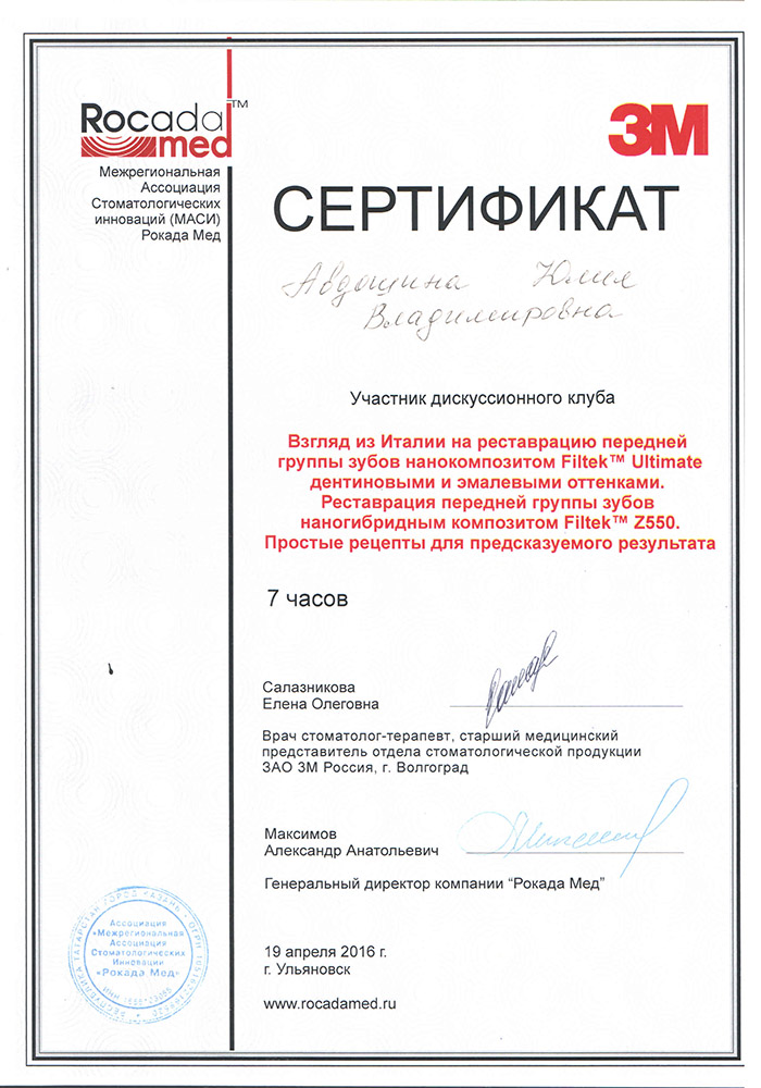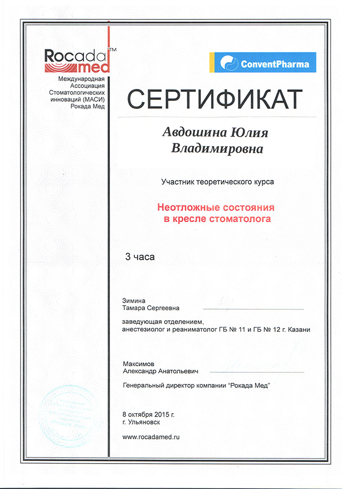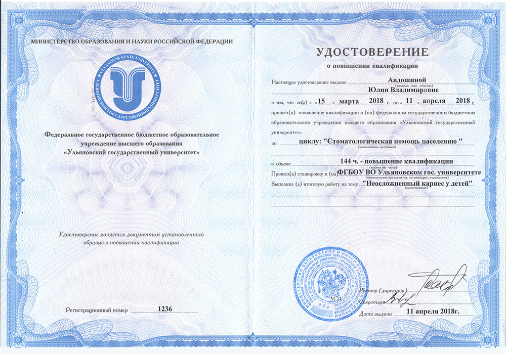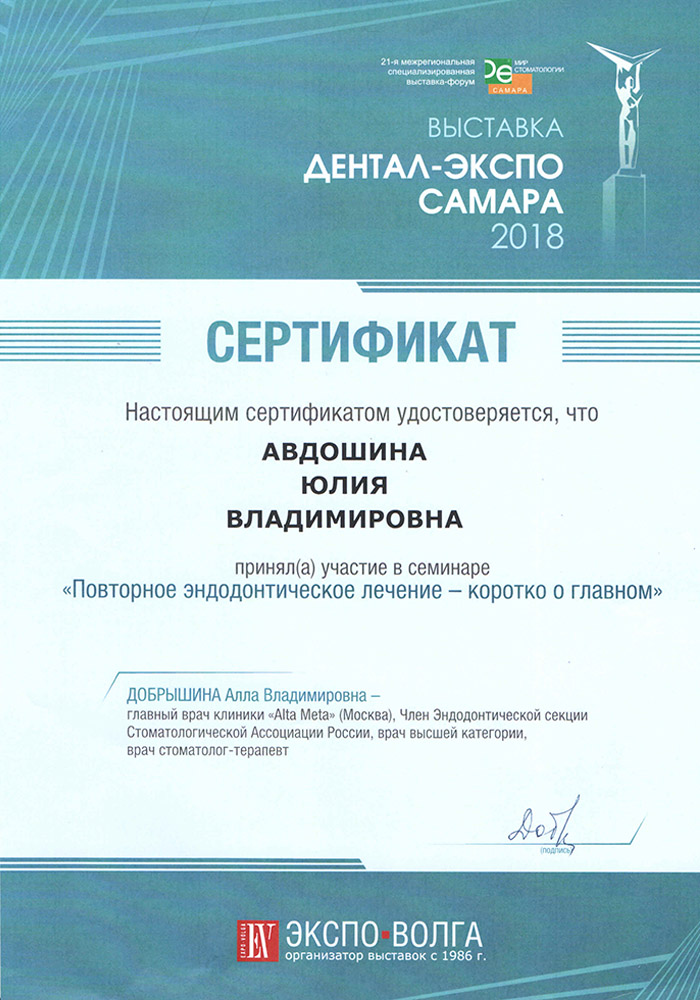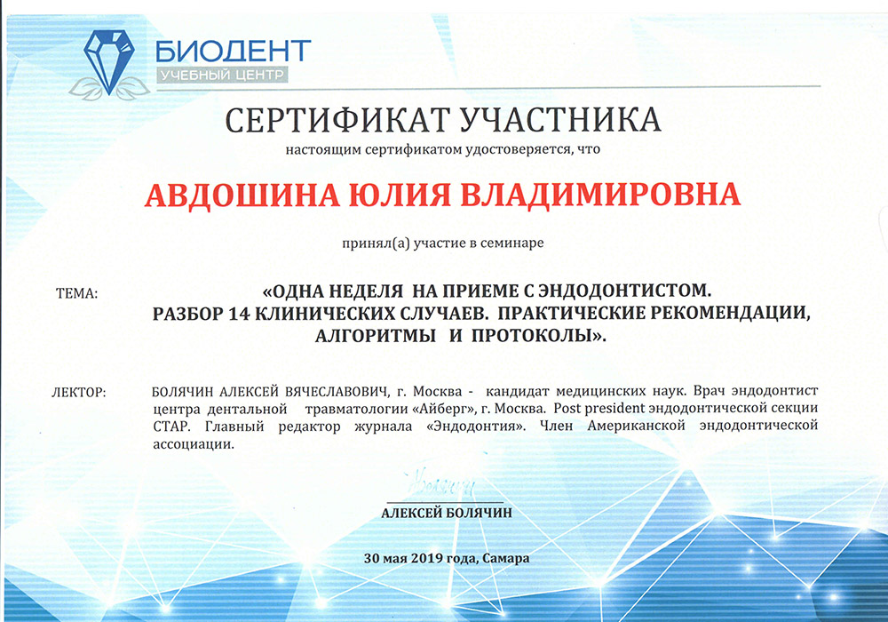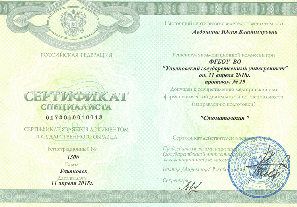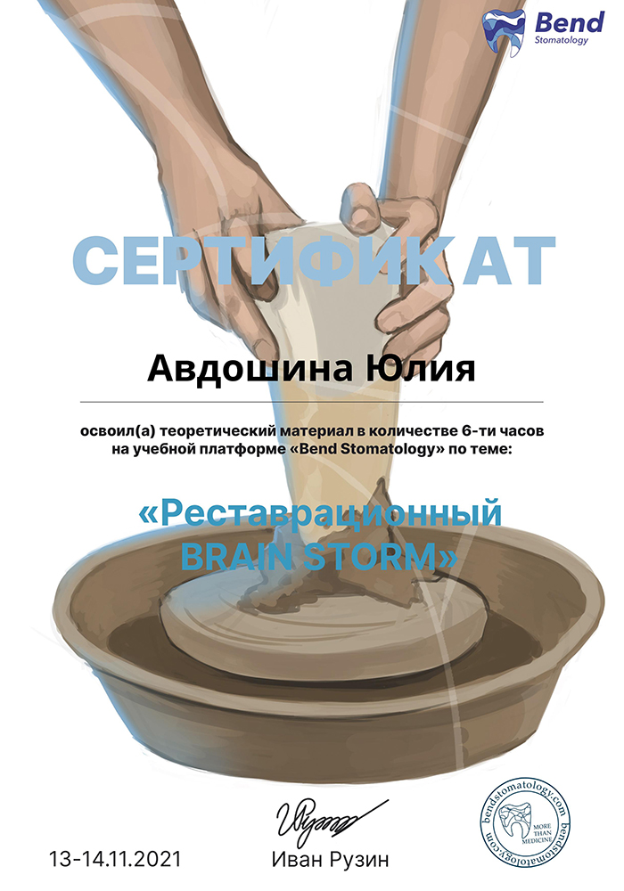 Сегодня была на приёме у Авдошиной Ю. В. У меня откололся зуб, думала, пойдет под удаление. Но Юлия Владимировна врач от Бога, сохранила мой зуб! Если бы все такими были! Профессионализм, клиентоориентированность и просто доброжелательность - всё это на высшем уровне! Спасибо Вам огромное!