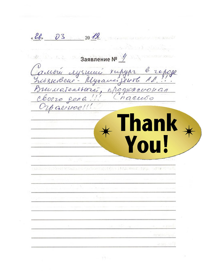 Самый лучший хирург в городе Ульяновске-Мухаметзянов А.А.!!! Внимательный, профессионал своего дела!!! Спасибо...