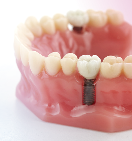 При установке коронки на имплантате соседние зубы не обтачиваются и остаются здоровыми